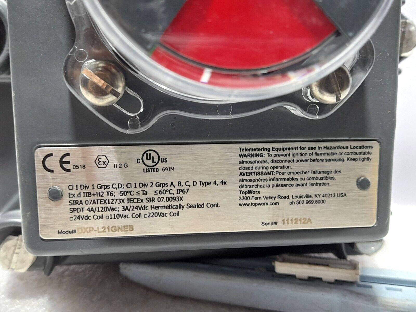 Topworx DXP-L21GNEB Valve Controller DXPL21GNEB SPDT 4A/120VAC; 3A/24VDC